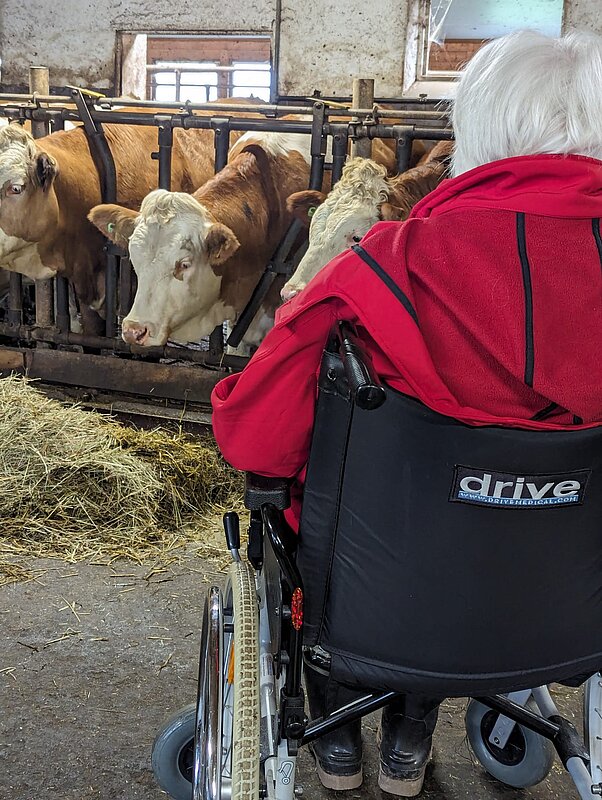 Der Laitscher Hof ist ein Erlebnis- und Mitmachbauernhof, der Menschen mit Einschränkungen und ihren Begleitpersonen einen geschützten Rahmen für gemeinsame Zeit bietet. In kleinen Gruppen erleben die Besucherinnen und Besucher den Hofalltag – ohne Hektik, ohne Leistungsdruck und im eigenen Tempo. Der Kontakt zu den Tieren wie Kühen, Hühnern, Hund, Katzen und Bienen, einfache Tätigkeiten sowie das bewusste Wahrnehmen von Natur und Jahreszeiten wecken Erinnerungen und schaffen Vertrautheit. Gemeinsam Butter herstellen, Brötchen backen oder andere einfache Handgriffe aus dem bäuerlichen Alltag fördern Teilhabe und Selbstwirksamkeit. Das anschließende gemeinsame Essen ist ein zentraler Bestandteil des Besuchs. Es schafft Struktur, Gemeinschaft und Momente der Nähe. Der Laitscher Hof verbindet Erinnerungsarbeit mit dem authentischen Alltag eines modernen Mutterkuhbetriebs und bietet eine familiäre Atmosphäre, in der Begegnung und gemeinsames Erleben im Mittelpunkt stehen.