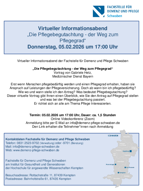 | Veranstalter | Fachstelle für Demenz und Pflege Schwaben |